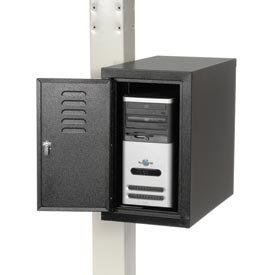 CPU SIDE CAR CABINET This side cabinet holds CPU towers safely and securely. This CPU storage cabinet easily attaches to Orbit workstation posts using only 4 screws. Front and rear cabinet doors feature louvers for ventilation and cylinder locks for security. Cable management openings throughout. This lockable CPU holder includes 2 Exhaust Fans to help reduce heat build up and maintain CPU cooling. CPU cabinet measures 12W x 22-1/2"D x 21-1/2H.